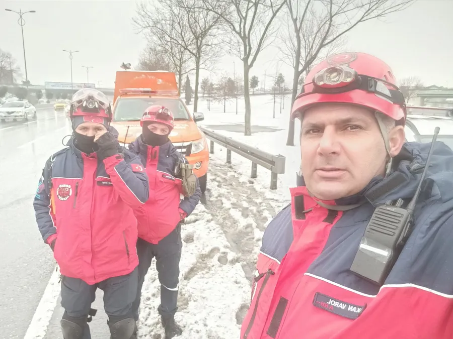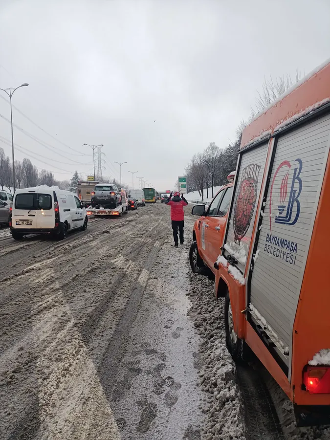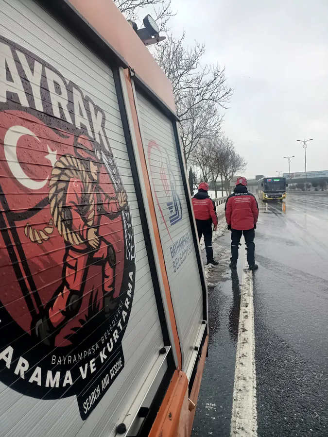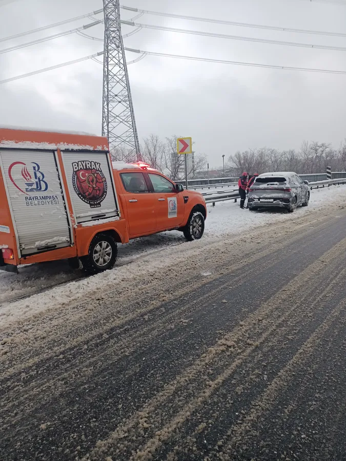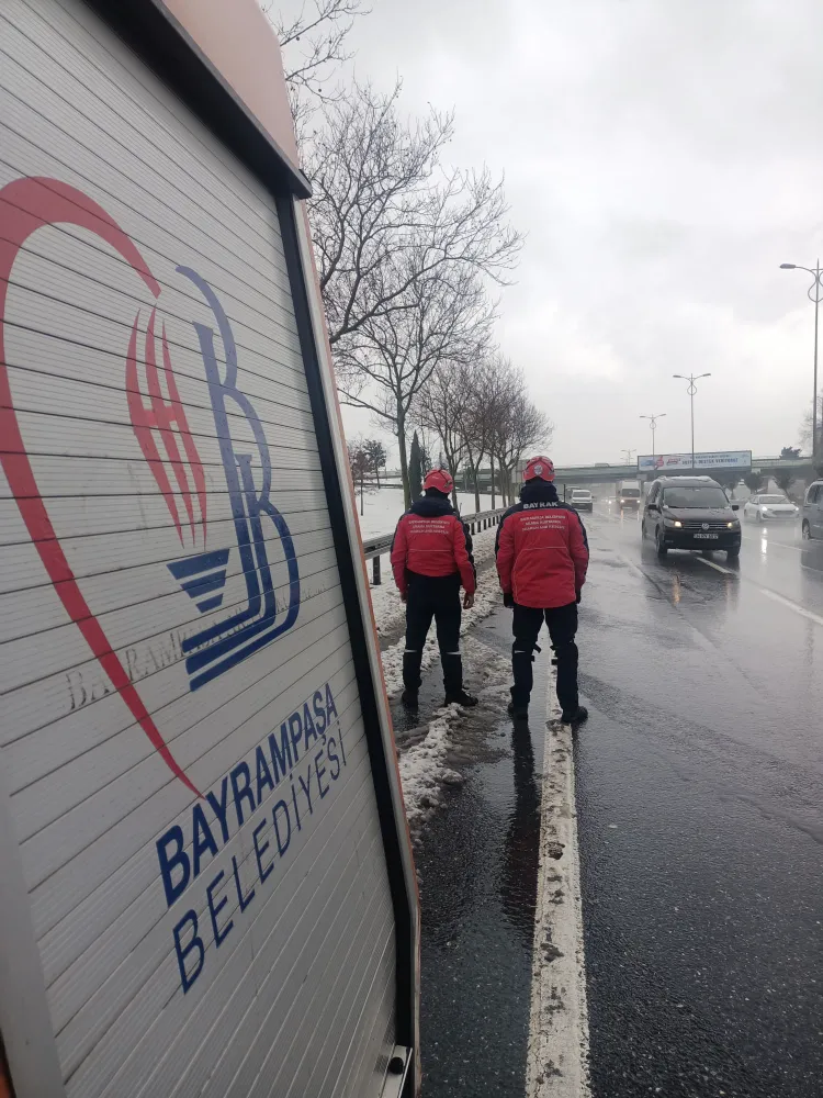 Yoğun kar yağışına rağmen sahada görev yapan Bayrampaşa Belediyesi Afet ve Risk Müdürlüğü Arama Kurtarma Bayrak Ekibi, trafik kazalarına ve yolda mahsur kalan vatandaşlara anında müdahale etti.