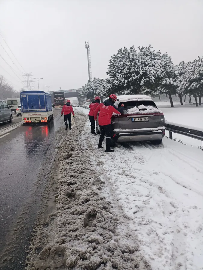 AFAD koordinasyonunda TEM Yolu – Bayrampaşa Hal Yolu üzerinde mahsur kalan vatandaşlara ulaşan ekipler, yolda kalan araçlara müdahale ederken yayaları güvenli alanlara yönlendirdi. Soğuk hava koşullarında vatandaşlara su ve kek ikramında bulunuldu.