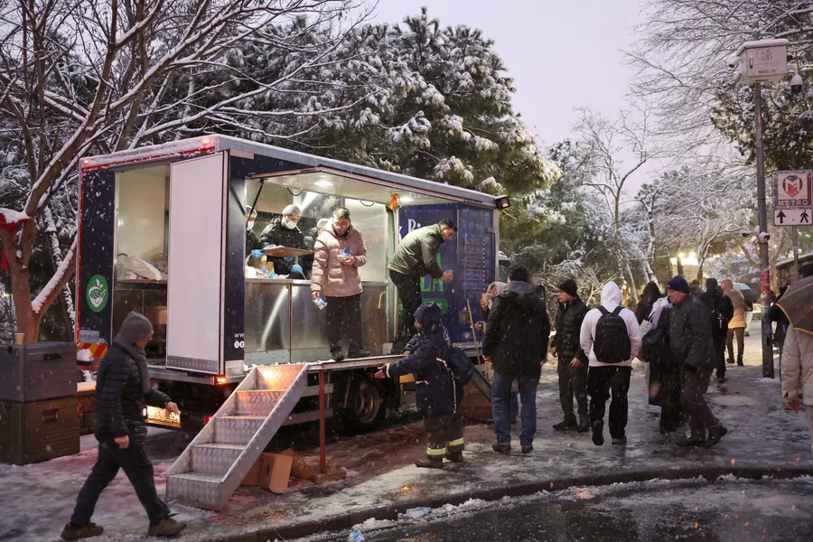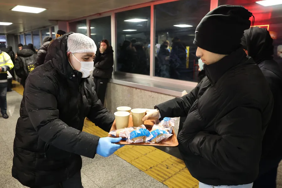 Kar yağışı altında işe gitmek için evlerinden çıkanlar, belediyenin çorba sürpriziyle karşılaştı. Kocatepe Metro İstasyonu önünde kurulan stantta dağıtılan çorba, hem soğuğu hem de karın getirdiği zorluğu biraz olsun unutturdu. Vatandaşlar, elinde sıcacık çorba ile işe yetişirken kısa bir mola verip içlerini ısıtma fırsatı buldu.