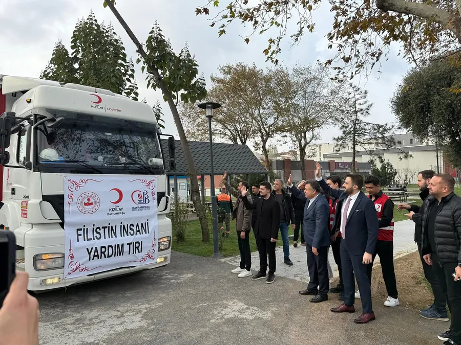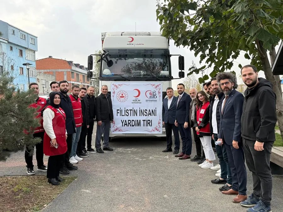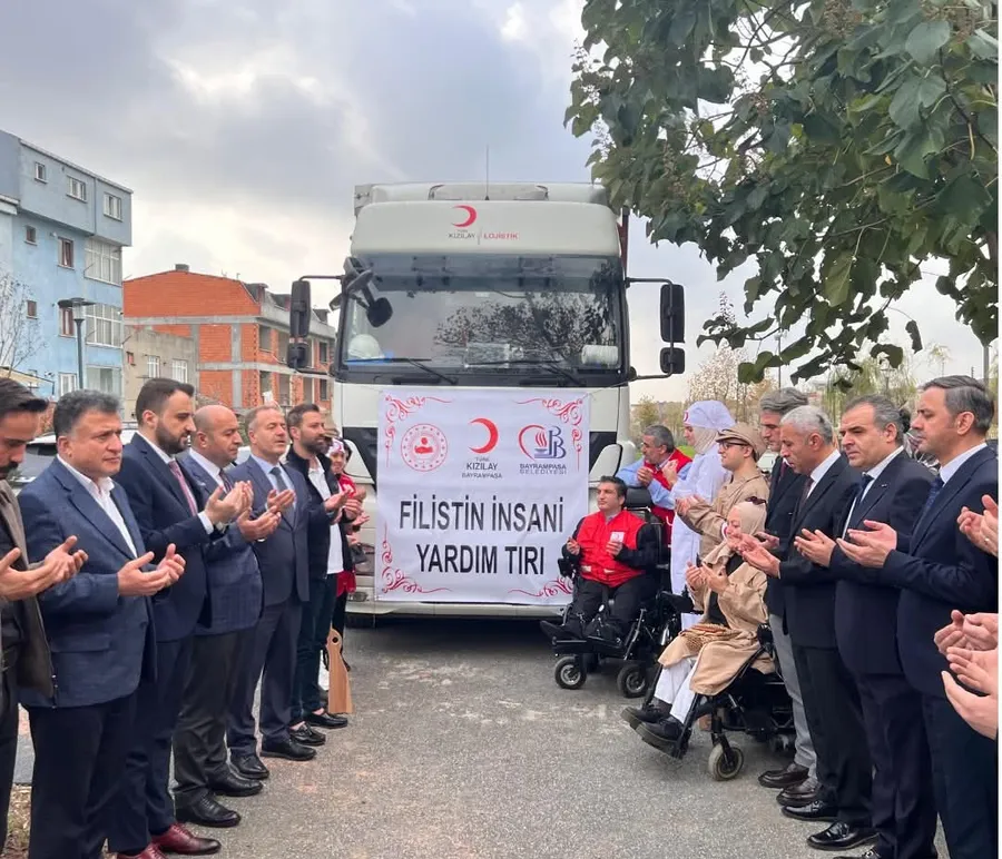 Bayrampaşa’da, Kızılay tarafından hazırlanan Filistin-Gazze yardım tırı düzenlenen törenle dualar eşliğinde yola çıktı.