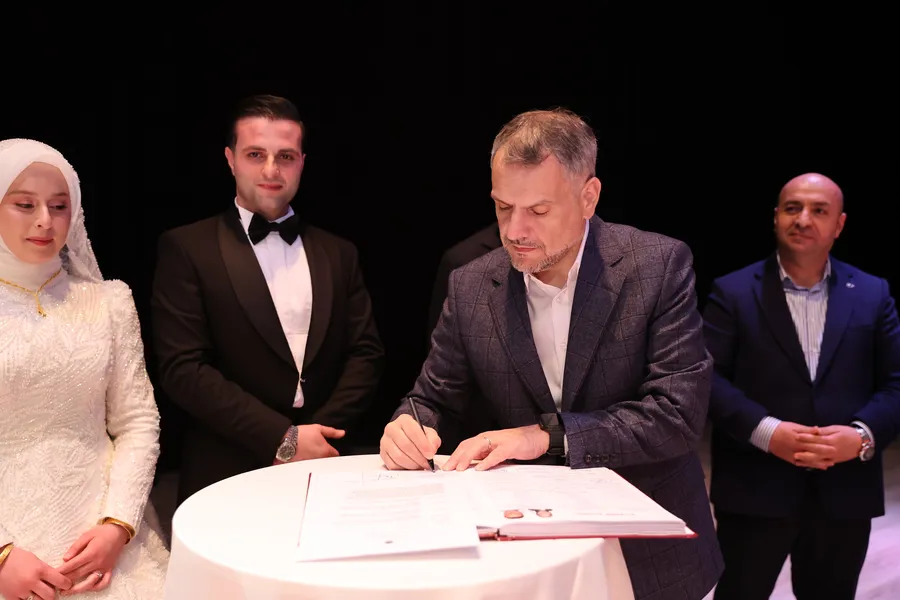Nikâh merasimi, Mehmet Akif Ersoy Kültür Merkezi’nde gerçekleştirildi. İlçe Müftüsü Recep Eren’in kıydığı nikâh töreninde çiftin mutluluğu gözlerinden okunurken, davetliler de bu özel ana tanıklık etti.