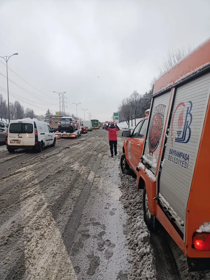 Öte yandan Bayrampaşa Belediyesi Arama Kurtarma (BAYRAK) ekibi de karla mücadele çalışmalarında aktif görev alıyor. BAYRAK ekibi, yoğun kar yağışı nedeniyle yolda kalan araçlara ve sürücülere yardımcı olurken, trafik akışının aksamaması için ilgili birimlerle koordineli şekilde çalışmalarını sürdürüyor. Ekipler, özellikle buzlanma riski bulunan bölgelerde güvenlik önlemleri alarak vatandaşların mağduriyet yaşamaması için sahada görev yapıyor.