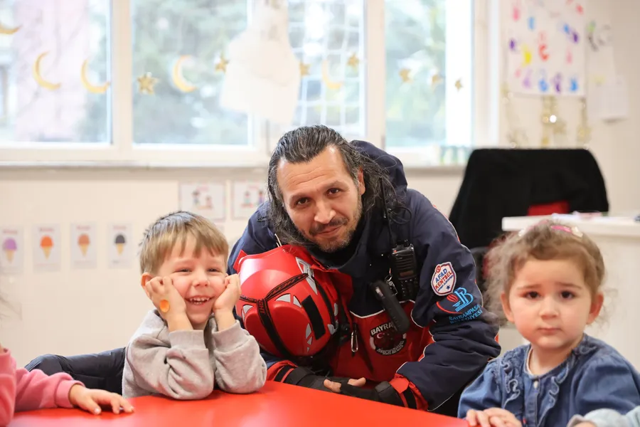 Bayrampaşa Belediyesi Arama-Kurtarma (BAYRAK) ekiplerince gerçekleştirilen tatbikatta minik öğrenciler, öğretmenlerinin rehberliğinde deprem anında yapılması gerekenleri uygulamalı olarak öğrendi. “Çök-kapan-tutun” hareketini başarıyla yerine getiren çocuklar, ardından güvenli bir şekilde tahliye edilerek toplanma alanlarına geçti. Tatbikat boyunca hem disiplin hem de çocuklara özgü tatlı bir heyecan hakimdi. Miniklerin tatbikat boyunca bilinçli ve sakin davranışları takdir topladı.