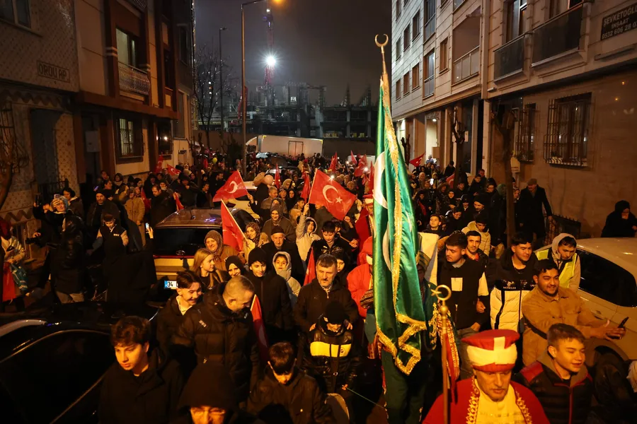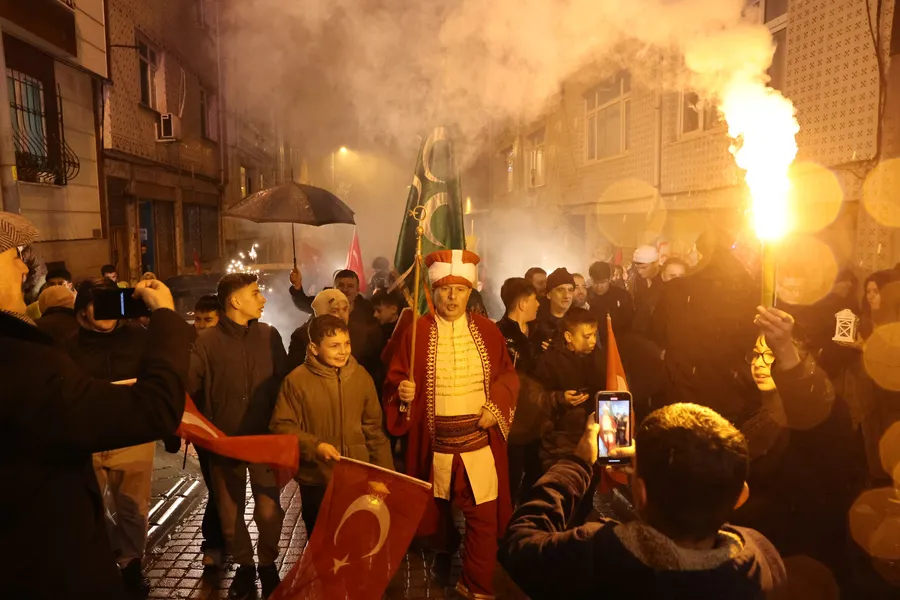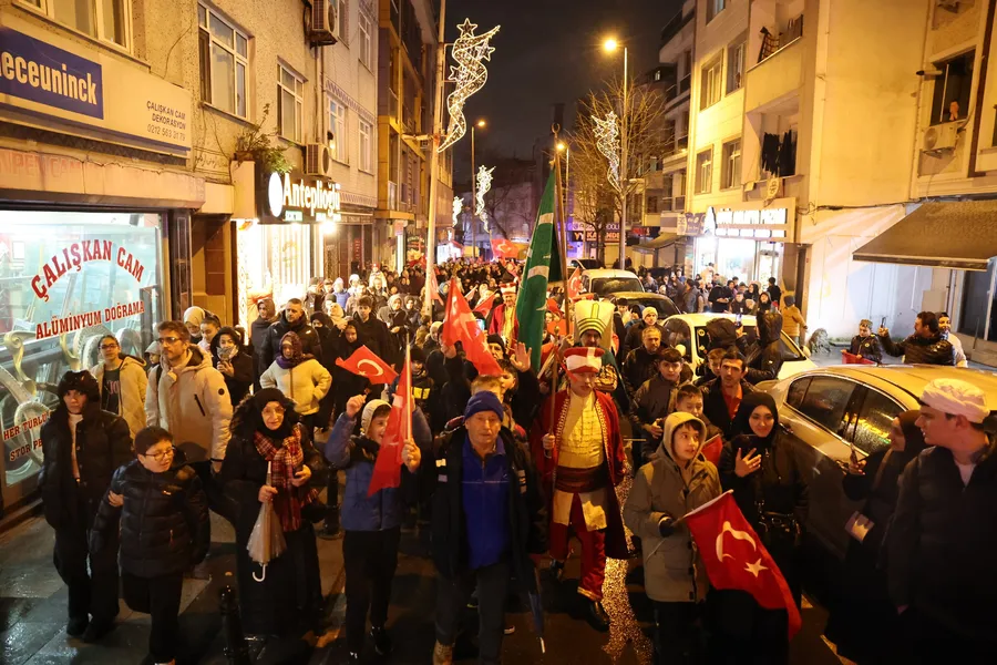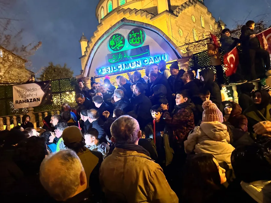 Teravih namazının ardından Yeşil Çimen Camii önünde başlayan etkinlikte, Türk bayrakları ve meşalelerle donatılmış fener alayı Bayrampaşa sokaklarında yürüyüş gerçekleştirdi. Mehter takımının coşkulu marşları, ilahi ve tekbir sesleriyle birleşerek Ramazan’ın manevi atmosferini zirveye taşıdı.