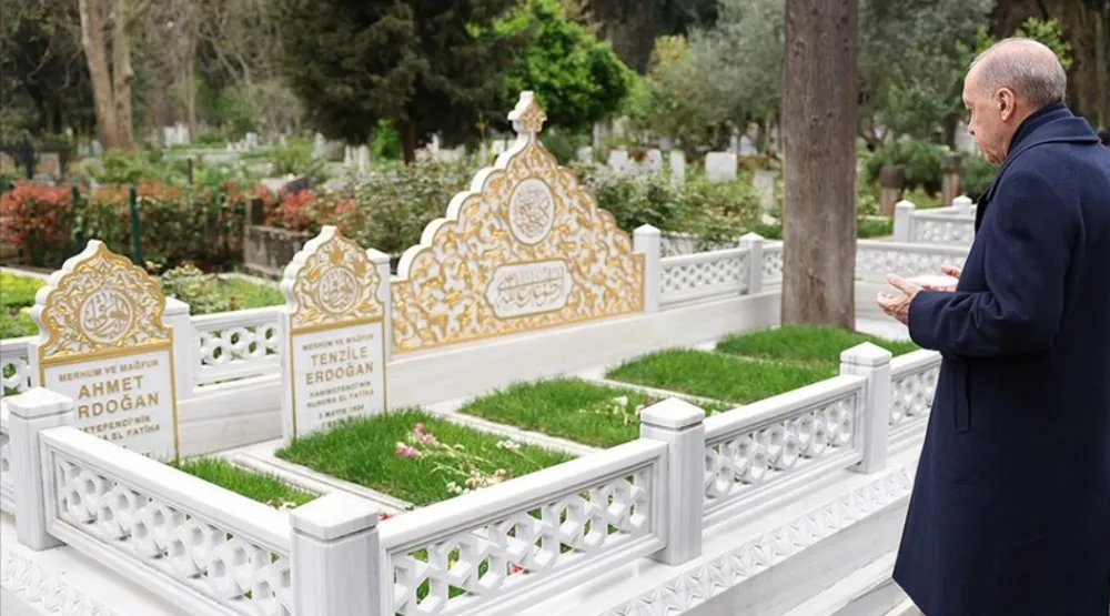 Bayramın manevi atmosferini ailesinin kabri başında geçiren Erdoğan, İstanbul'daki Karacaahmet Mezarlığı'na gelerek annesi Tenzile Erdoğan ve babası Ahmet Erdoğan için dua etti.