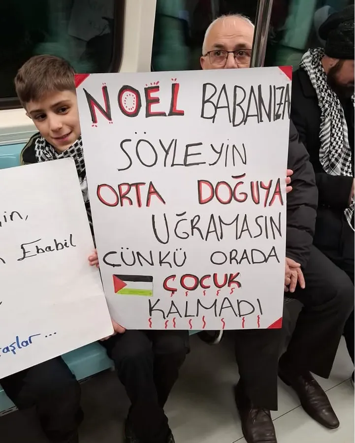 İstanbul’un simgelerinden Galata Kulesi’ne Filistin kefiyesi asılırken, Yeni Cami duvarlarına “Bizde yiğitler bitmez”, “Kanla ödenen bedel özgürlük getirecek”, “Hanzala bir gün dönecek” yazılı pankartlar asıldı.