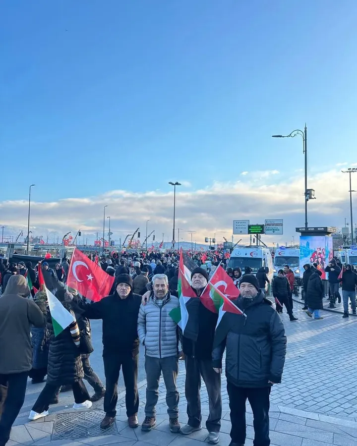 İnsanlık İttifakı ve Milli İrade Platformu öncülüğünde, Filistin’de yaşanan katliamların durdurulması amacıyla Galata Köprüsü’nde düzenlenen büyük buluşmaya yaklaşık 520 bin kişi katıldı. 400’den fazla sivil toplum kuruluşunun destek verdiği eylem, İstanbul’da son yılların en geniş katılımlı vicdan yürüyüşlerinden biri olarak kayıtlara geçti.