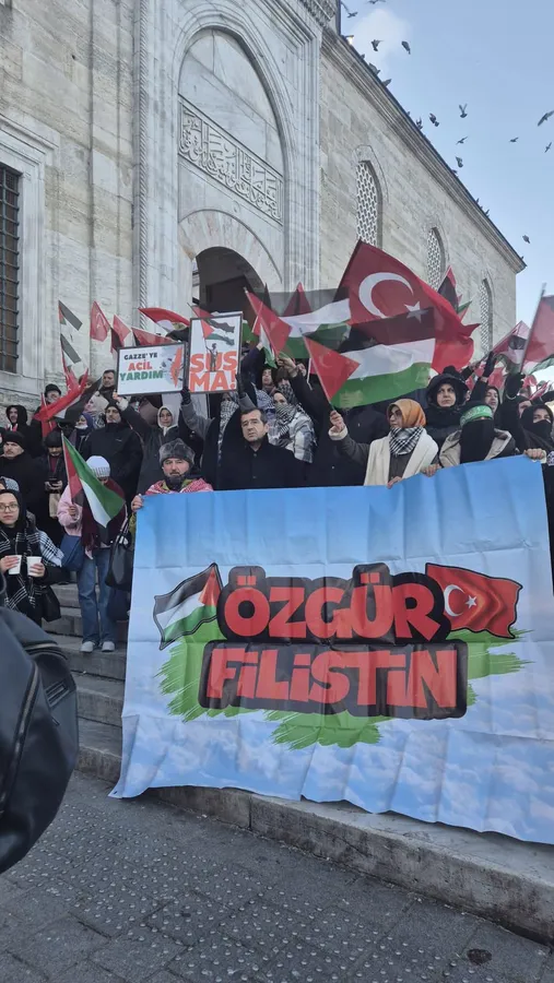 “Sinmiyoruz, susmuyoruz, Filistin’i unutmuyoruz” sloganıyla gerçekleştirilen eylem, Ayasofya-i Kebir Cami-i Şerifi, Sultanahmet, Fatih, Süleymaniye ve Eminönü Yeni Camii başta olmak üzere birçok camide kılınan sabah namazının ardından başladı. On binlerce vatandaş, kortejler halinde Galata Köprüsü’ne yürüdü.