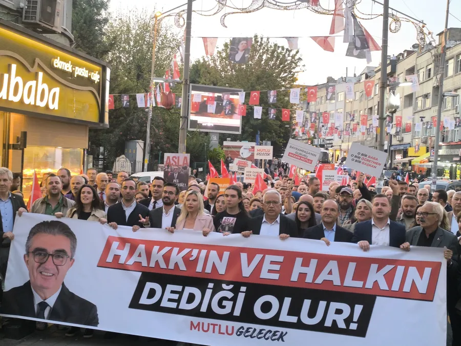 Bayrampaşa’da tutuklu Belediye Başkanı Hasan Mutlu ve yol arkadaşlarına destek amacıyla binlerce vatandaşın katılımıyla “İradeye Saygı Yürüyüşü” düzenlendi. Yürüyüşün ardından CHP İlçe Başkanı Alican Çam, Mutlu’nun Silivri’den gönderdiği mektubu okudu.