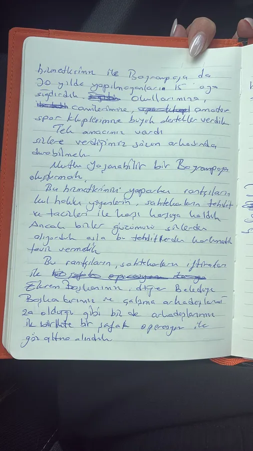 > “Sevgili komşularım, dostlarım, kıymetli Bayrampaşalılar; sizlerin helal oylarıyla aldığımız görevi, halkın olanı halka kazandırmak için yürüttük. 15 ayda birçok hizmeti hayata geçirdik. Ancak rantçılar ve sahtekarların iftiralarıyla haksız yere tutuklandık.